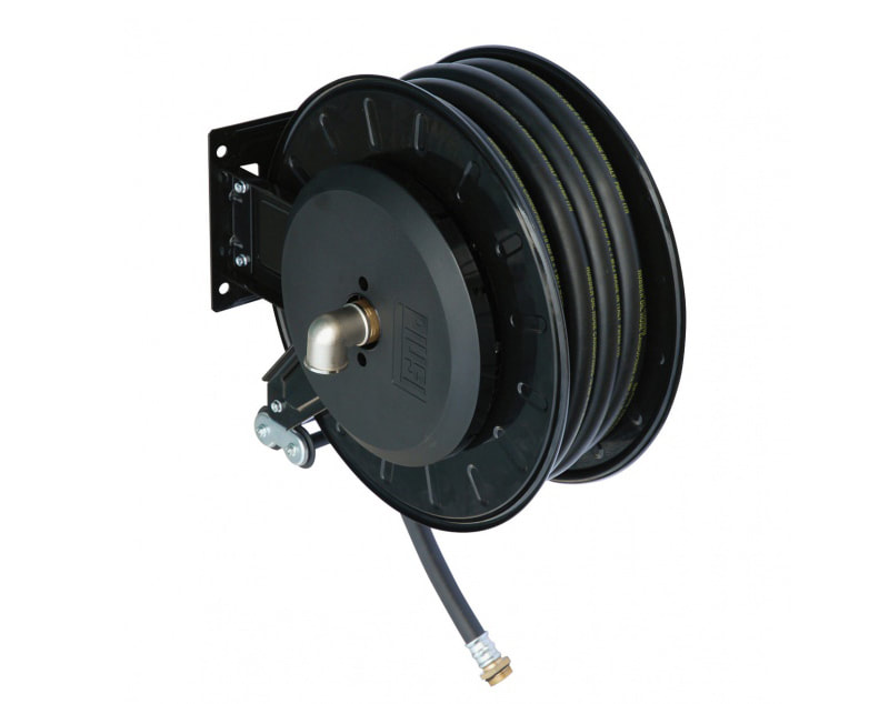 The Piusi Automatic Diesel Hose Reel has been designed specifically to work with low pressure diesel pumping systems such as vehicle refuelling applications. Popular with bunded fuel tank manufacturers for mounting directly onto the storage tank, this retractable diesel fuel hose reel can be supplied complete with a range of hose lengths, or as a bare reel should the user wish to add their own choice of hose. These diesel hose reels benefit from a sturdy steel structure for use in heavy duty environments, adjustable arm brackets for easy positioning and a protected latch mechanism to prevent injury to the hands when operating the reel. The bare version of the Piusi retractable diesel hose reel comes with a protection spring, hose stop and hose clamp for the easy connection of the user's choice of hose.