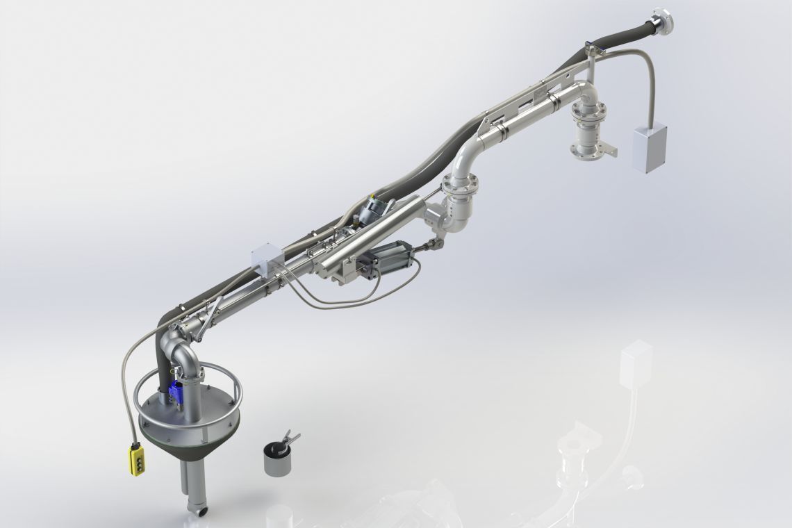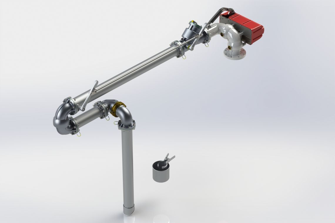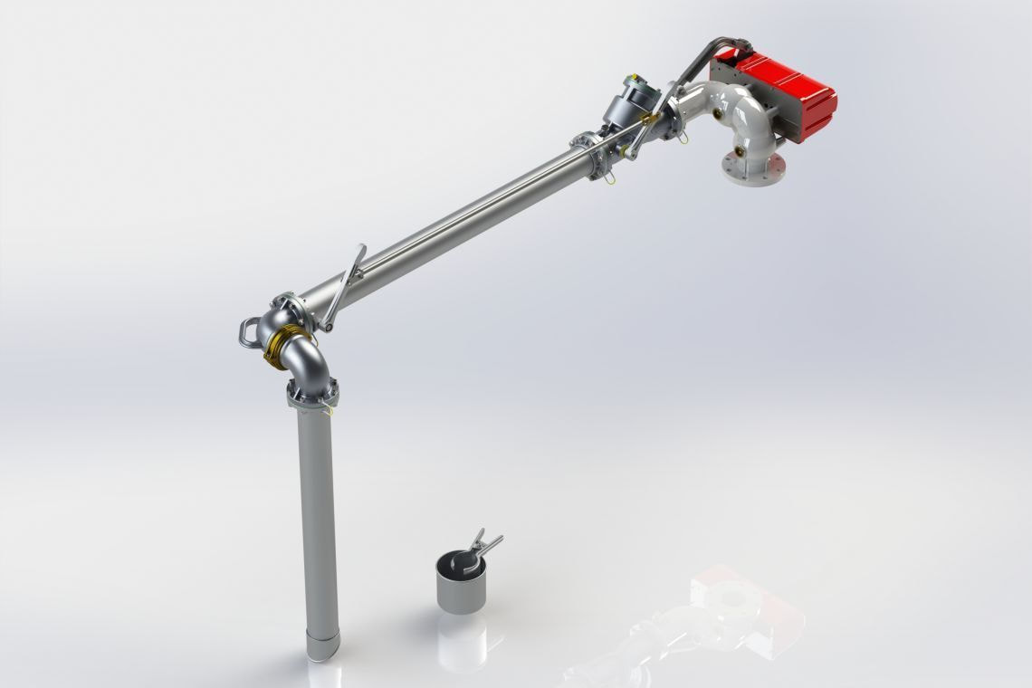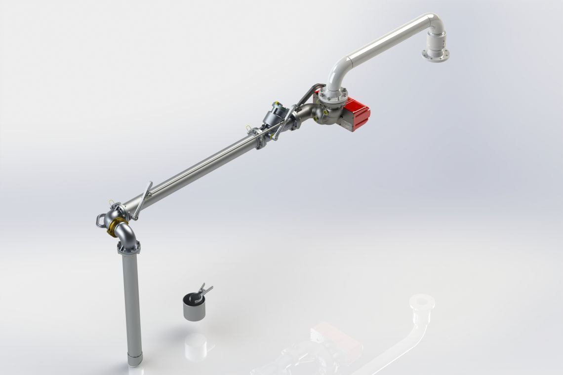 The top loading arm is an articulated piping supported by a mechanical balancing (torsion or compression spring) or pneumatic system, which is used to transfer fuels or industrial liquids in tankers and railway tanks through the top manholes. For every kind of need relating to the loading area, different types of products can be configured with variable range of action and with flow entry direction from above and below. Top loading arms are equipped with a flow valve initiated with pre-opening and closing speed adjustment system. Otherwise, either a ball valve or other types of valve can be mounted according to the user's needs